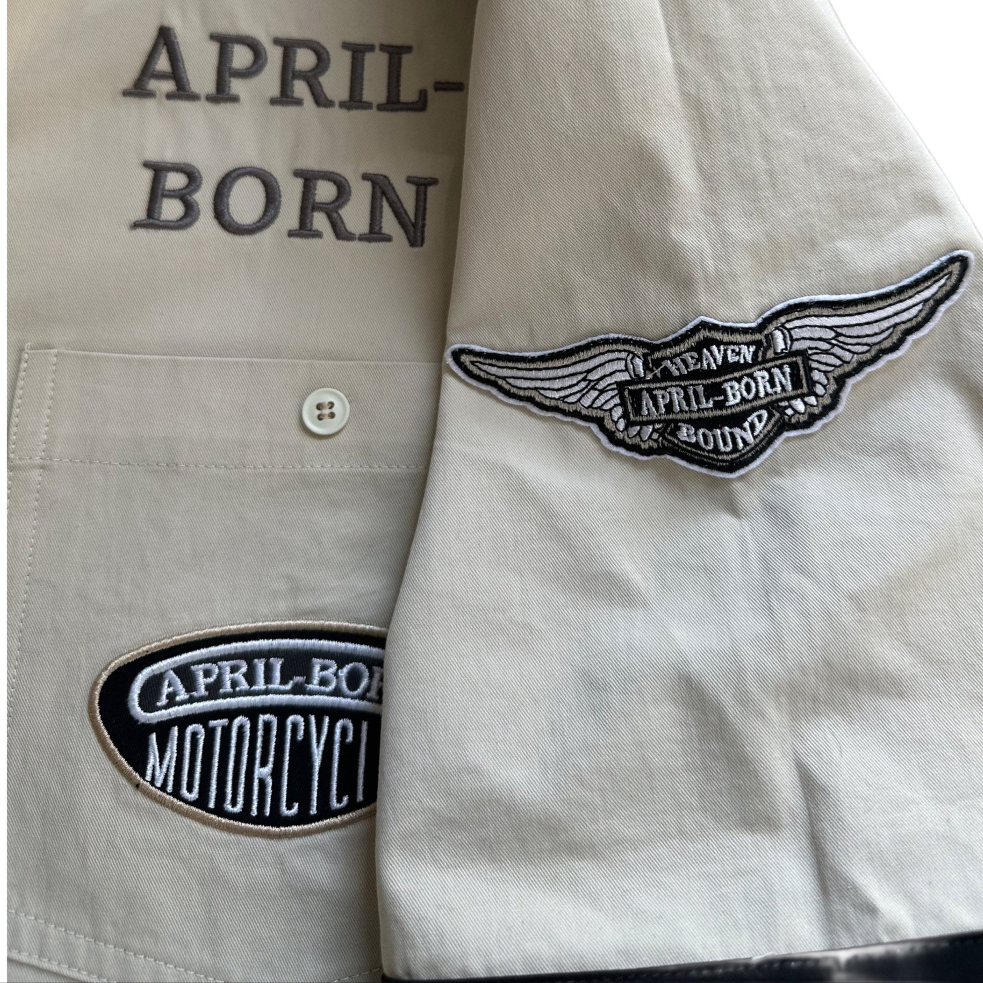 Workwear-inspired short sleeve button-up shirt in Cream with Black trim